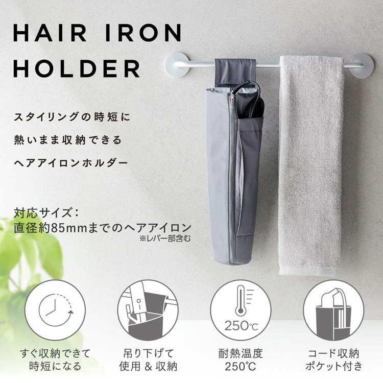 ●アツアツのヘアアイロンをそのまましまえるヘアアイロンホルダーです。髪を巻いたらすぐにしまって即出勤OK。