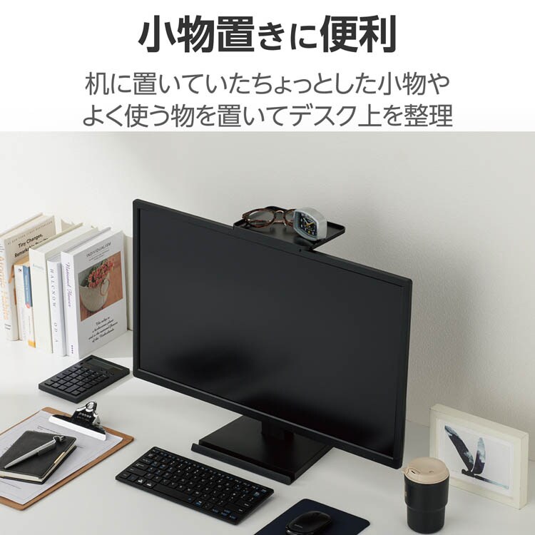 ●液晶ディスプレイの上を有効に利用して、机に置いていたちょっとした小物やよく使う物を置くことができるので、作業スペースが広がります。