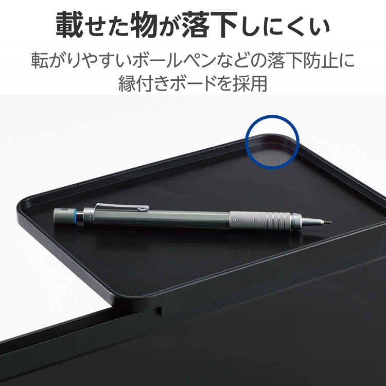 ●ボード端に縁が付いているので、転がりやすいボールペンなどの落下防止にもなります。