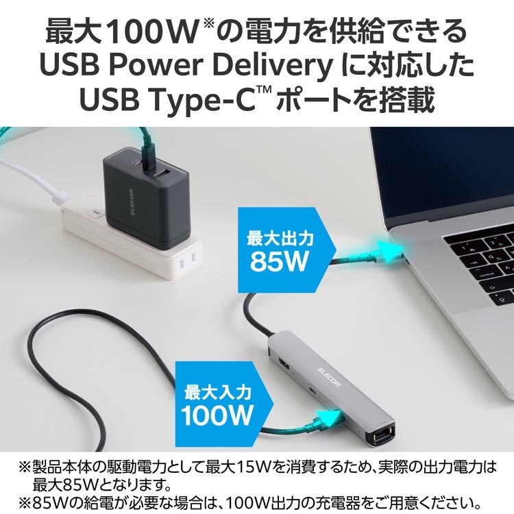 ※85Wの給電が必要な場合は、100W出力の充電器をご用意ください。