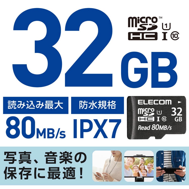 【エレコム マイクロSDHCカード 32GB Class10 UHS-I U1 80MB/s 防水 IPX7の商品詳細】