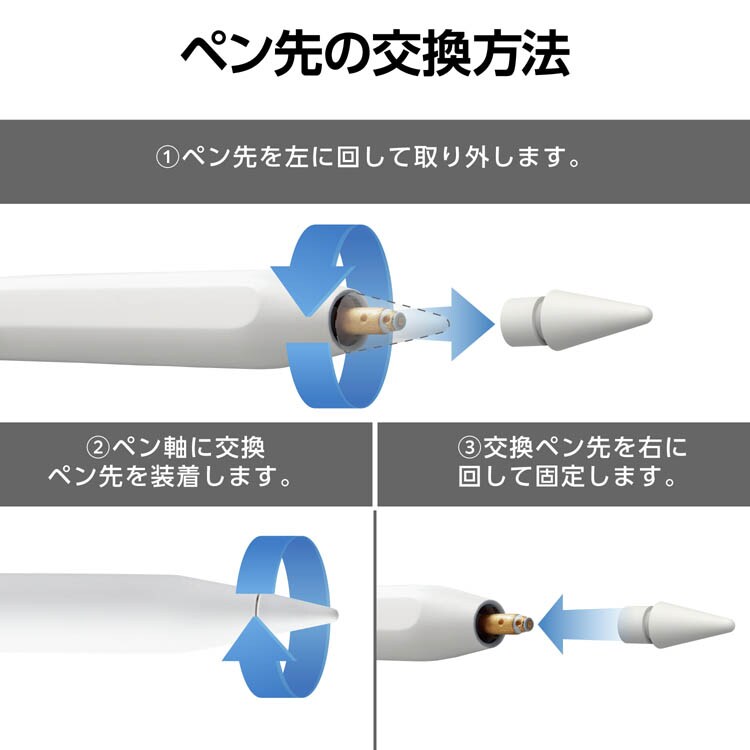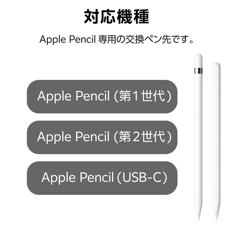 | ・対応機種:Apple Pencil (第1世代)、Apple Pencil (第2世代)、Apple Pencil (USB-C) ・外形寸法:ペン先:約1mm ・材質:ポリアセタール、銅 ・セット内容:交換ペン先:3個、取扱説明書 |