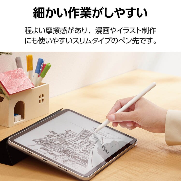 ●程よい摩擦感のある描き心地で、漫画やイラスト制作のような細かい作業にも使いやすいスリムタイプのペン先です。