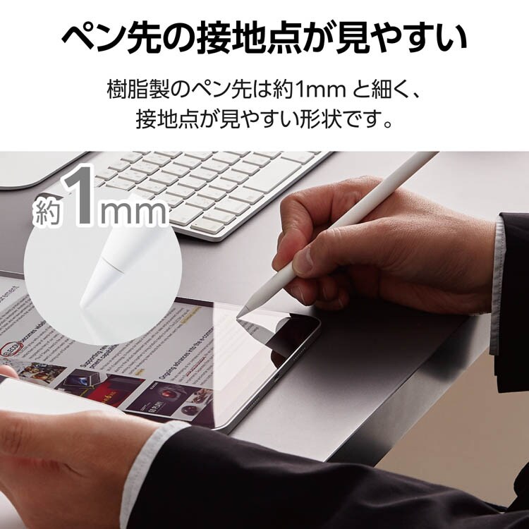 ●樹脂製のペン先は約1mmと細く、接地点が見やすい形状です。