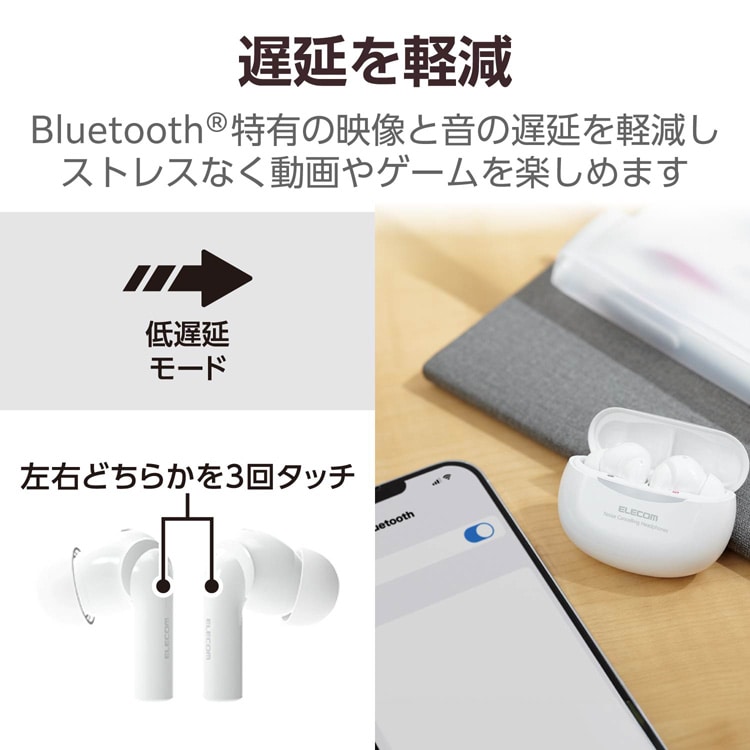 【エレコム ワイヤレスイヤホン Bluetooth 5.2 アクティブ ノイズキャンセリング 白の商品詳細】