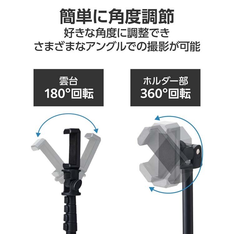 ●雲台の角度を180度調整できるので、さまざまなアングルでの撮影が可能です。