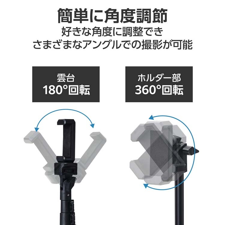 【エレコム スマホ三脚 最大約165cm スマホホルダー付 ブラック P-STCFWL02BKの商品詳細】