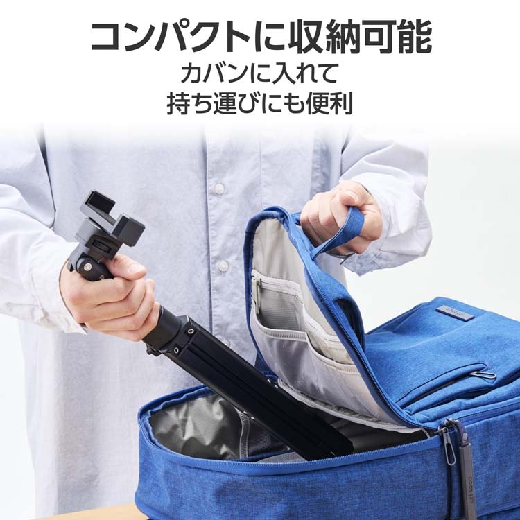 | ・材質:三脚:ABS・アルミニウム、スマホホルダー:ABS・EVA ・外形寸法:φ約29mm×H約445mm ※突起部除く ・最大地上高:約1650mm ・最低地上高:約370mm ・重量:三脚:約466g、スマホホルダー:約23g ・カラー:ブラック ・対応機種:4.0インチ~6.7インチ、1/4インチネジに対応した一眼レフカメラや拡張アクセサリー ・内容物: |