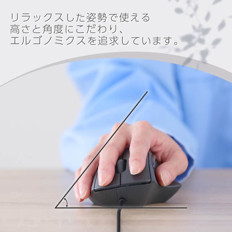 ●高さと角度にこだわったエルゴノミクス形状で、手のひらから手首、腕までリラックスした姿勢で使えます。