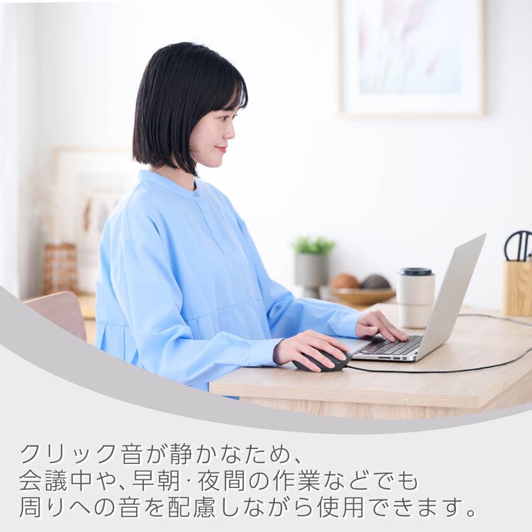 ●クリック音が静かなため、ミーティング中やリビング・カフェ、シェアオフィスなど周りに人がいる場面でも音を気にせず使えます。