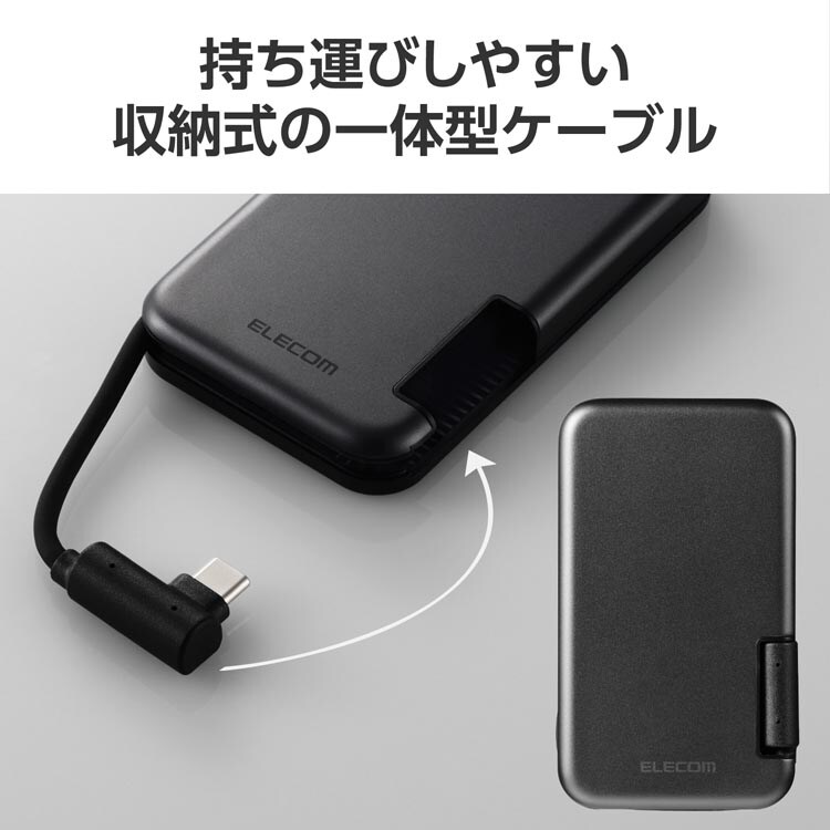 ●一体型のケーブルは収納式でスッキリとまとめることができるため、持ち運びの際にも邪魔になりません。