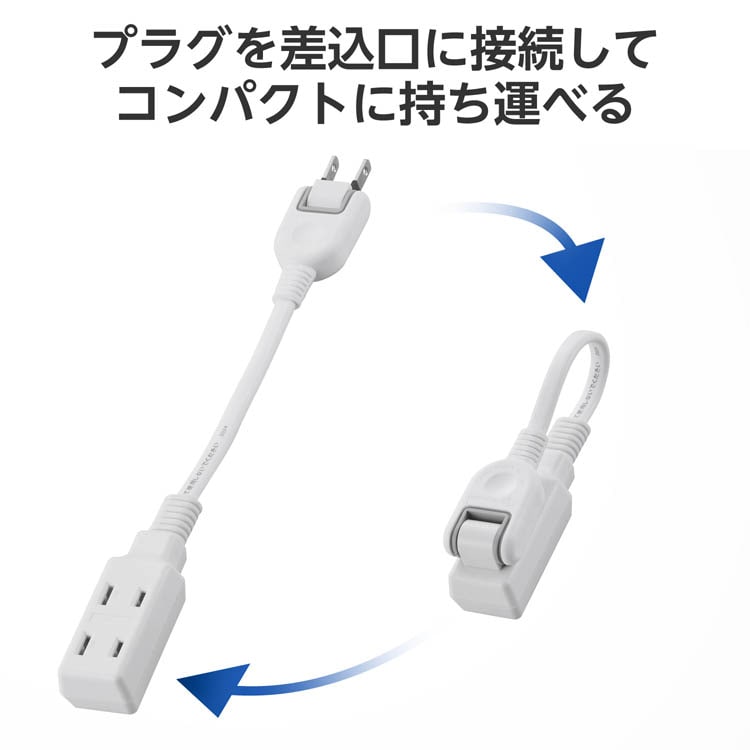 ●プラグを差込口に接続することでコンパクトにできるため、カバンなどに収納する際もかさばらず、持ち運びに便利な2ピン式3個口のタップです。