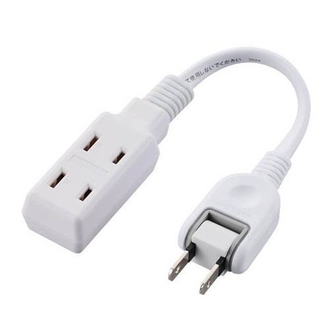 エレコム 電源タップ 延長コード 0.1m 2ピン式 コンセント 3個口 極性対応 ホワイト (1個)