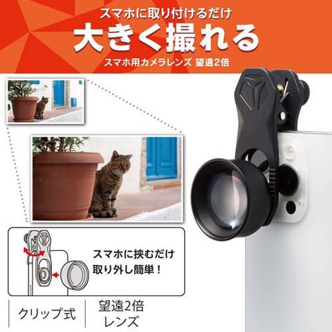 ●スマートフォンのカメラレンズに合わせて挟むだけで、望遠撮影ができるスマートフォン用カメラレンズ(2倍)です。