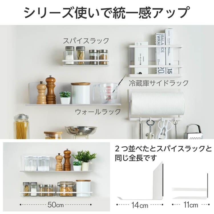 ●当製品を2つ並べると、当社シリーズ製品にあるウォールラックの全長が一緒なので統一感がでてキッチンツールをおしゃれに収納できます。(型番:KAWWLSLMGAWH)