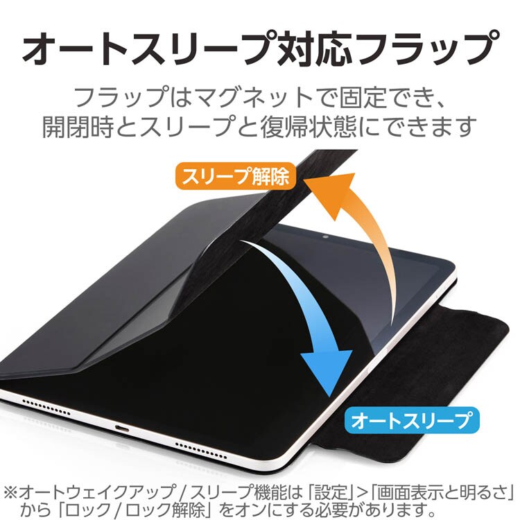 ●フラップカバーはマグネットでしっかり固定できます。また、オートスリープ/オートウェイクアップ機能が素早く機能します。