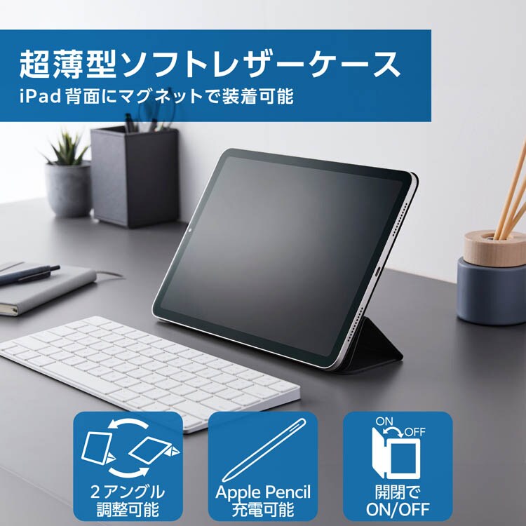 エレコム iPad 10.9インチ ケース レザー 本体マグネット装着 手帳型 ブラック (1個)