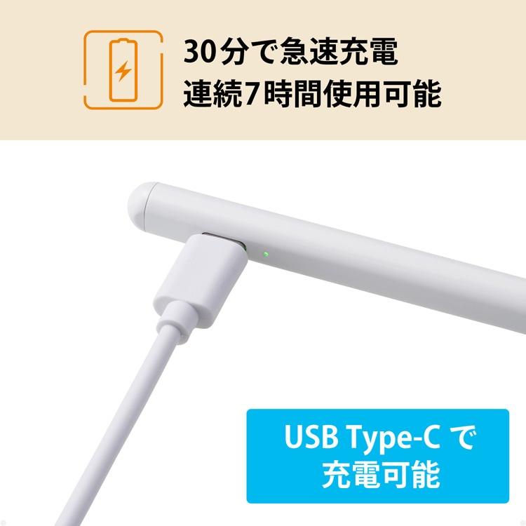 エレコム 充電式スタイラスペン Type-C急速充電 磁気吸着 ホワイト (1本)