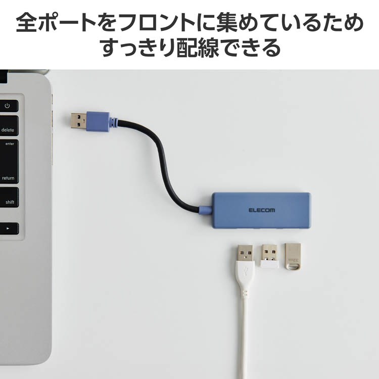 【エレコム USBハブ USB3.2 Gen1 USB-A×3 バスパワー ネイビーの商品詳細】