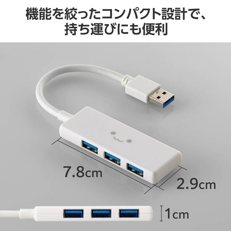 【エレコム USBハブ USB3.2 Gen1 USB-A×3 バスパワー しろちゃんの商品詳細】