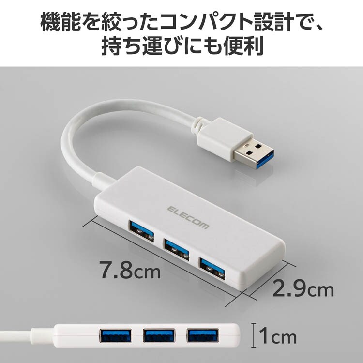 【エレコム USBハブ USB3.2 Gen1 USB-A×3 バスパワー ホワイトの商品詳細】