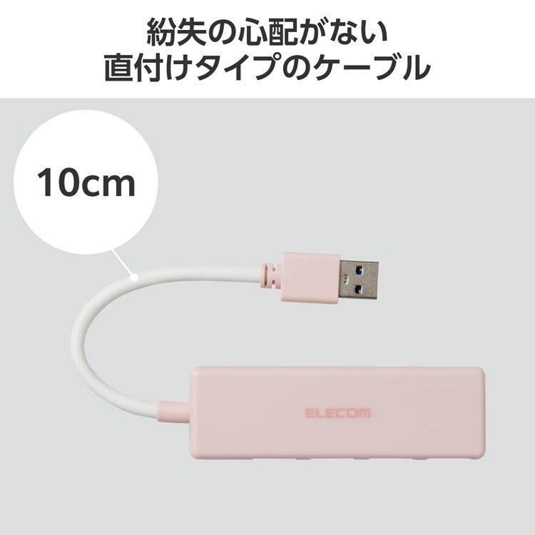【エレコム USBハブ USB3.2 Gen1 USB-A×4 バスパワー ピンクの商品詳細】