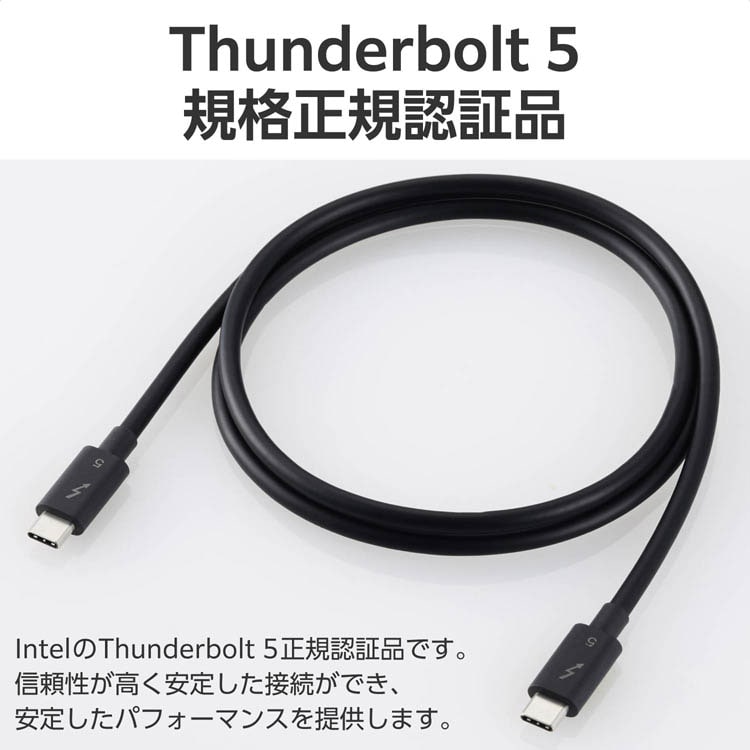 ●IntelのThunderbolt 5正規認証品です。信頼性が高く安定した接続ができ、安定したパフォーマンスを提供します。