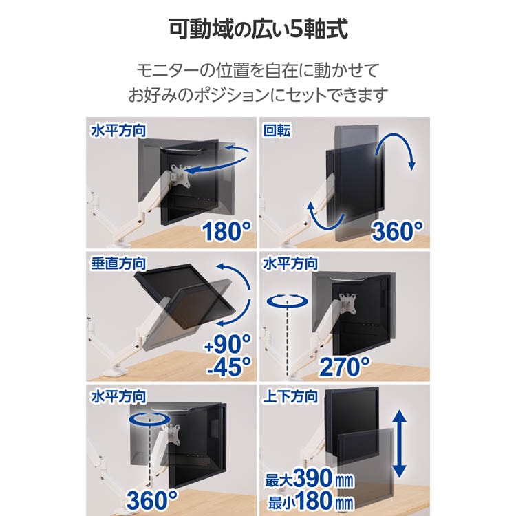 【エレコム モニターアーム デュアル2画面 ガススプリング式 ホワイトの商品詳細】