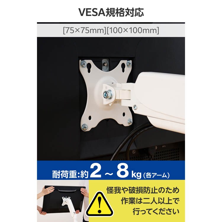 ●VESA規格(75mm×75mm、100mm×100mm)に準拠したモニターに対応しています。