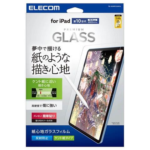 エレコム iPad第10世代 10.9インチ 紙心地ガラスフィルム ケント紙 反射防止 (1枚)