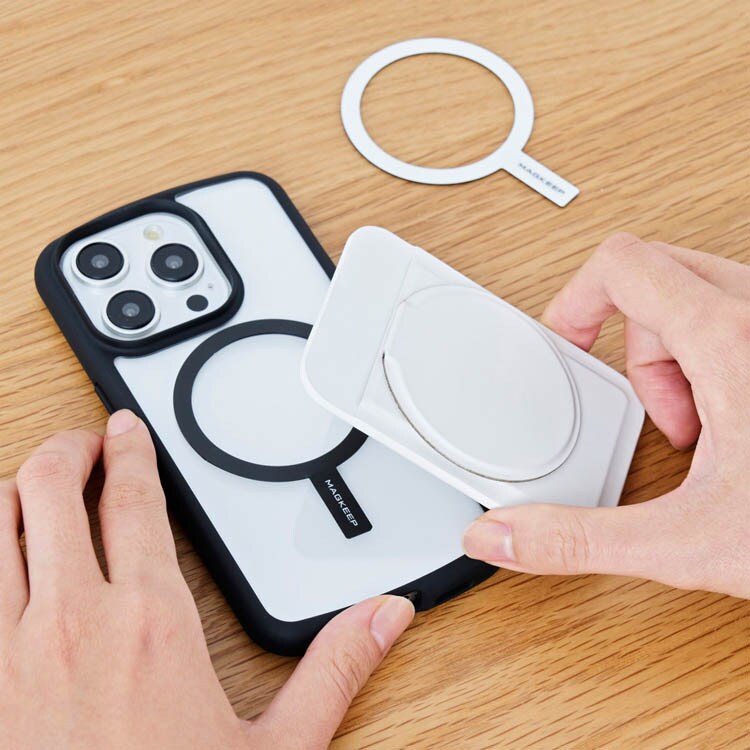 ●MagSafeで簡単に着脱できる、カードポケット付きのスマートフォン用マグネットスタンドです。