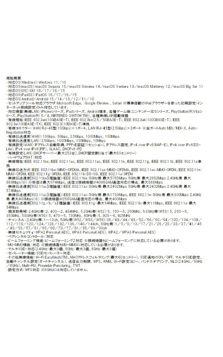 ●Wi-Fi 7対応でさらなる高速、低遅延で快適な通信を実現します。