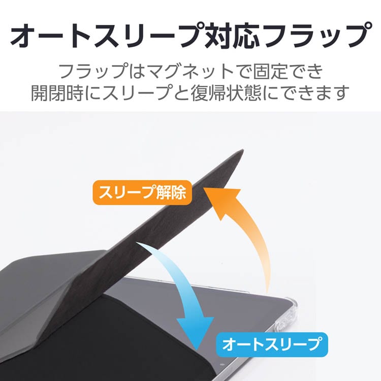 ●不使用時に画面部分を保護するフラップが付いています。フラップを閉じるとスリープモードになり、開けるとスリープから復帰します。