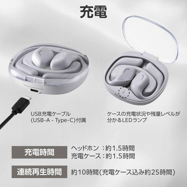 【エレコム オープンイヤー型ワイヤレスイヤホン Bluetooth 5.4 ウォームグレーの商品詳細】