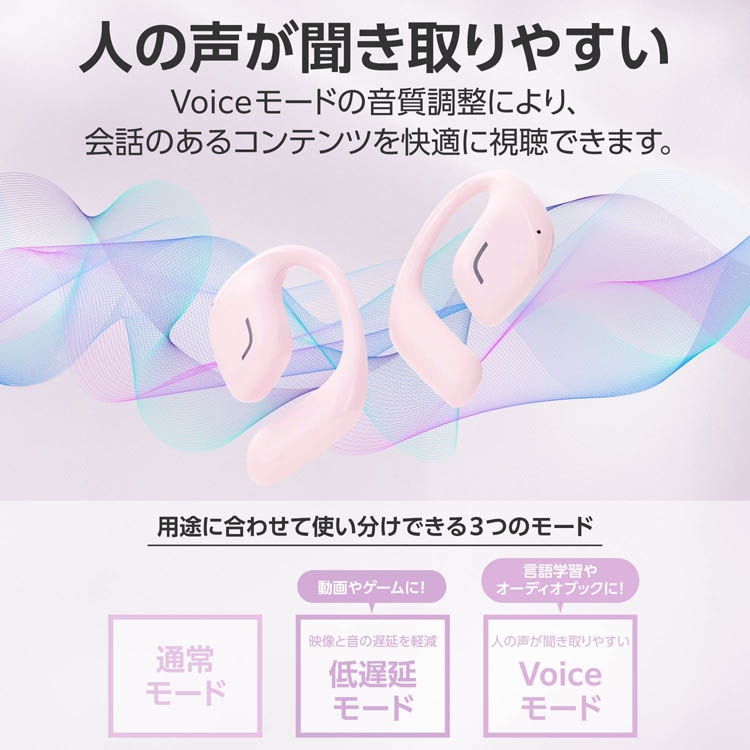 ●人の声が聴き取りやすいVoiceモードを搭載。人の声に当たる音域を聴き取りやすくした音質調整により、ラジオやオーディオブックなどの会話のあるコンテンツを快適に視聴できます。