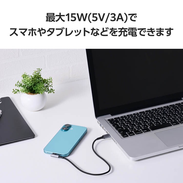 ●最大15W(5V/3A)の大電流で接続機器の充電が可能です。