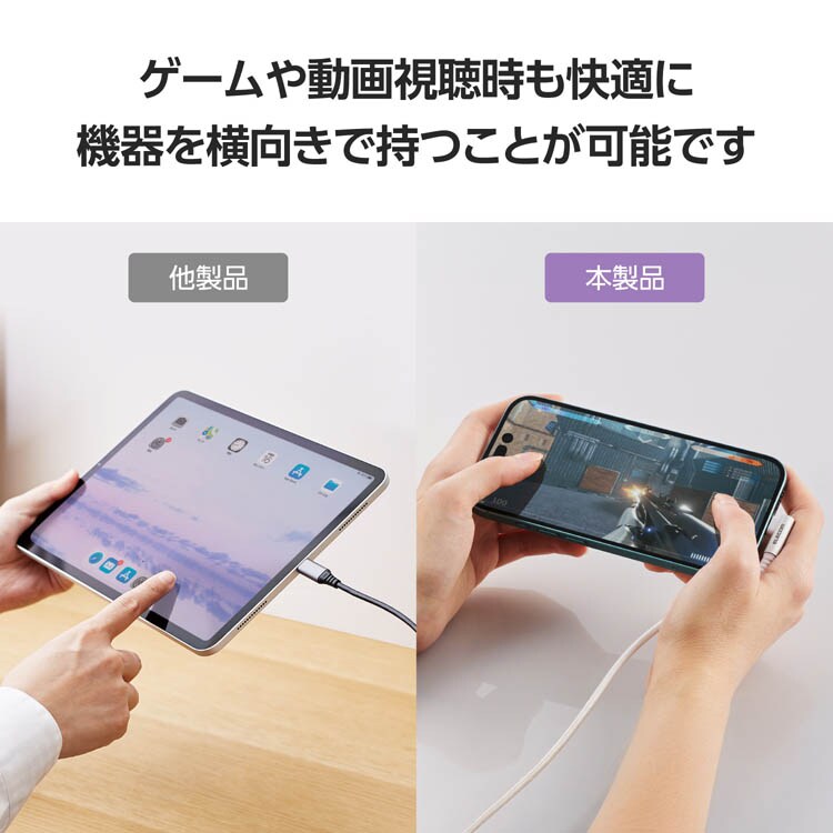 エレコム USB Type-C ケーブル USB-A to C 0.3m L字 ナイロンメッシュ ホワイト (1本)のレビュー