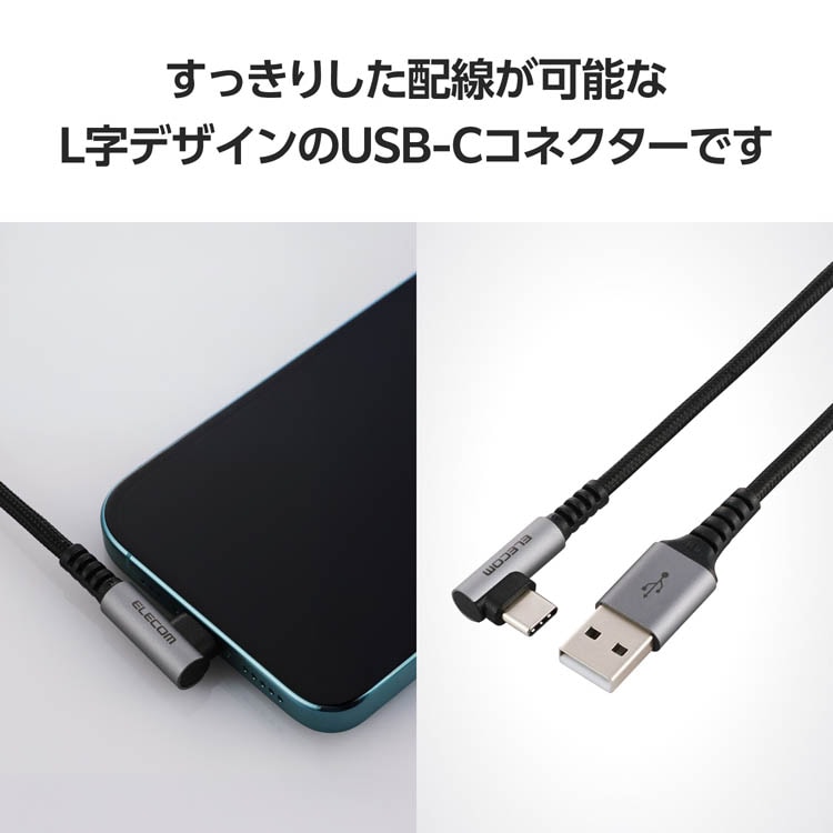 【エレコム USB Type-C ケーブル USB-A to C 1m L字 ナイロンメッシュ ブラックの商品詳細】