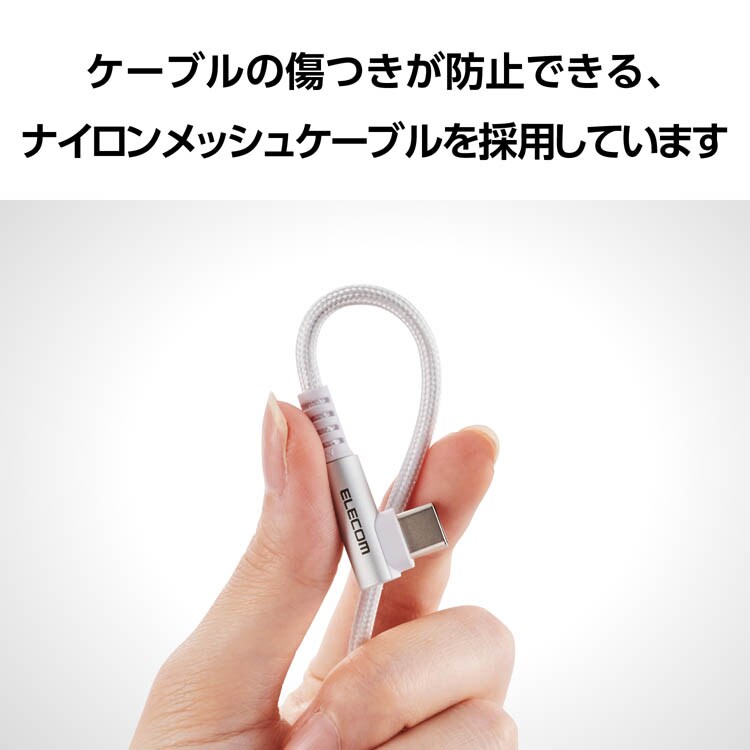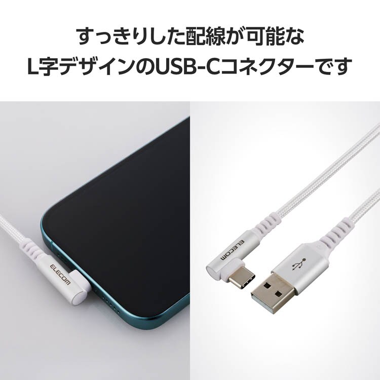 【エレコム USB Type-C ケーブル USB-A to C 2m L字 ナイロンメッシュ ホワイトの商品詳細】