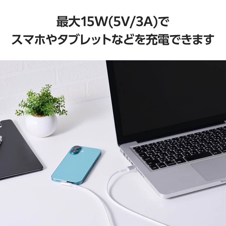 ●最大15W(5V/3A)の大電流で接続機器の充電が可能です。