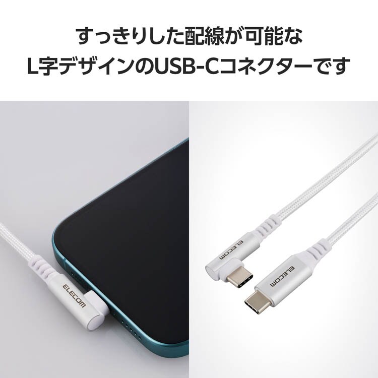 【エレコム USB Type-C ケーブル USB-C to C 1m L字 PD 60W ホワイトの商品詳細】