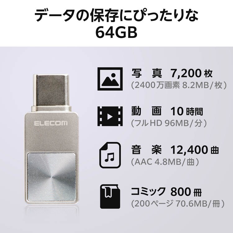 【エレコム USBメモリ 64GB USB3.2 Gen1 Type-C セキュリティ機能対応 シルバーの商品詳細】