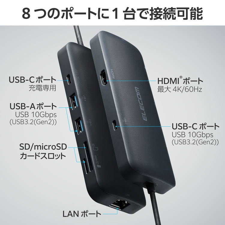 【エレコム Type-C ドッキングステーション 8-in-1 ハブ PD 85W出力 急速充電 ネイビーの商品詳細】