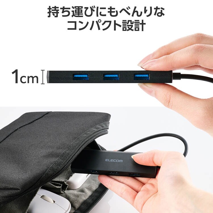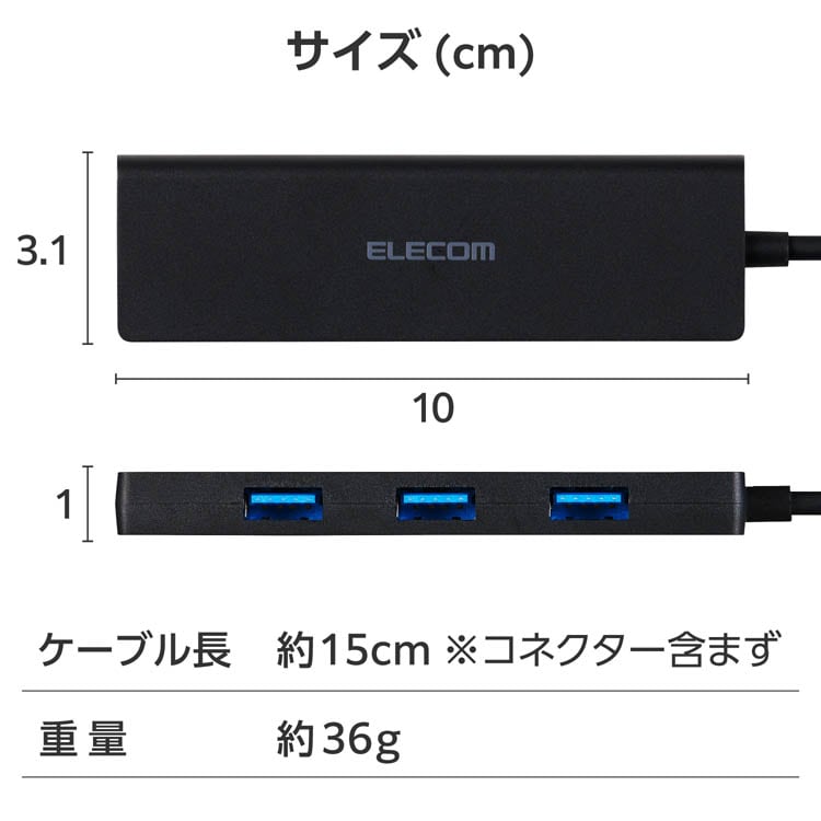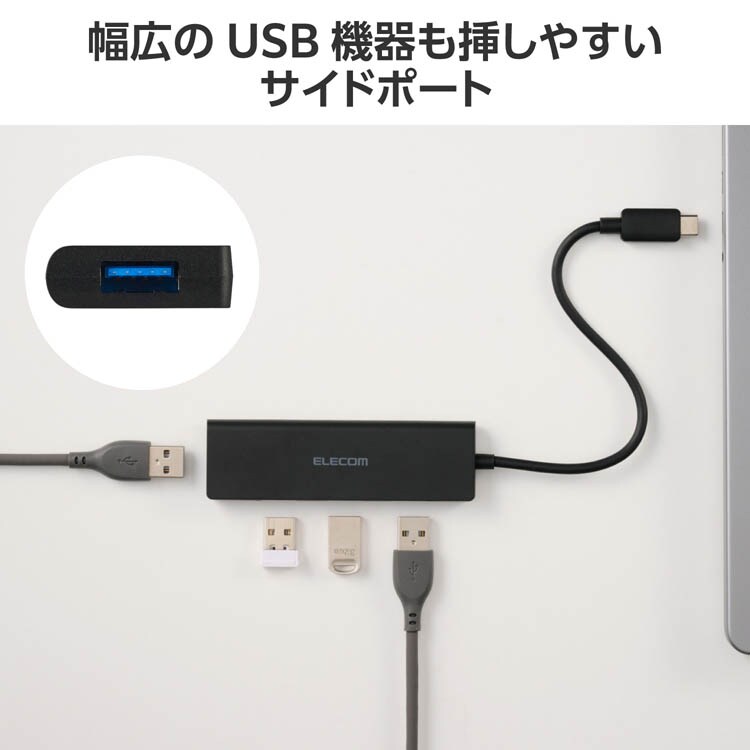 【エレコム Type-C ハブ USB3.2 Gen1 USB-A ×4 バスパワー ケーブル長15cm ブラックの商品詳細】