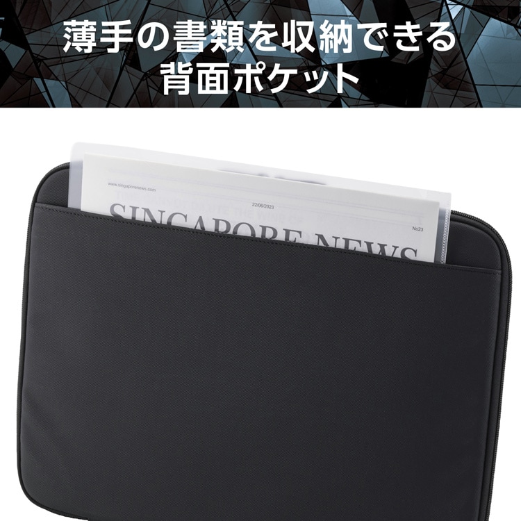 ●本体背面に、厚みがない書類などの収納に便利なオープンポケットを備えています。