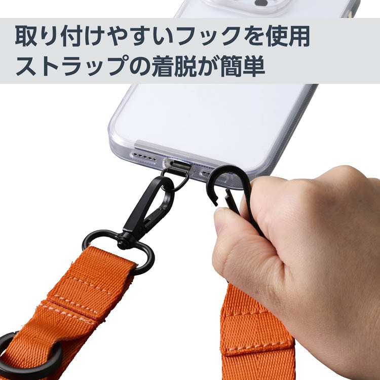 【エレコム スマホショルダー ストラップ 97-150cm ループ付 カラビナ ビビッドオレンジの商品詳細】