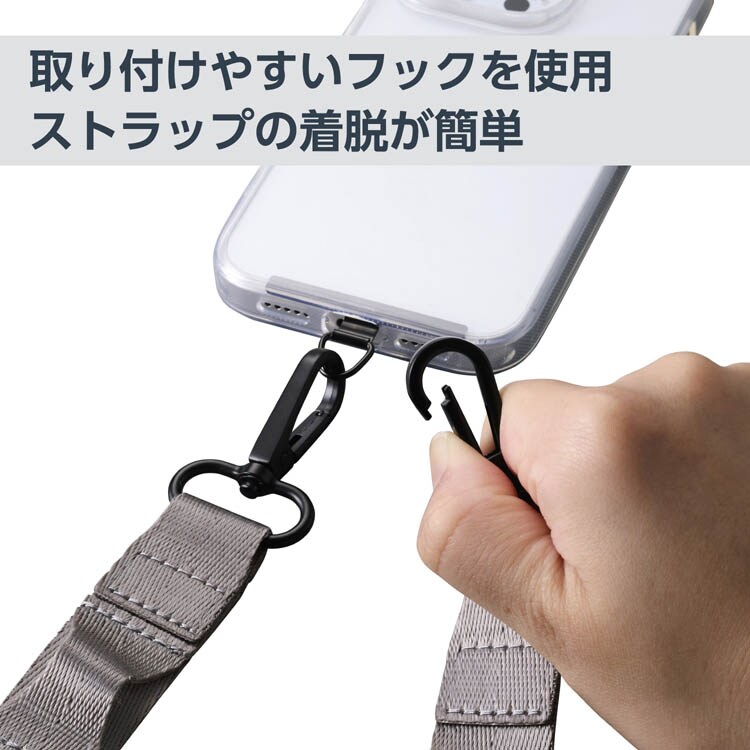 ●取り外しやすいフックを使用しているので、ストラップの着脱が簡単にできます。