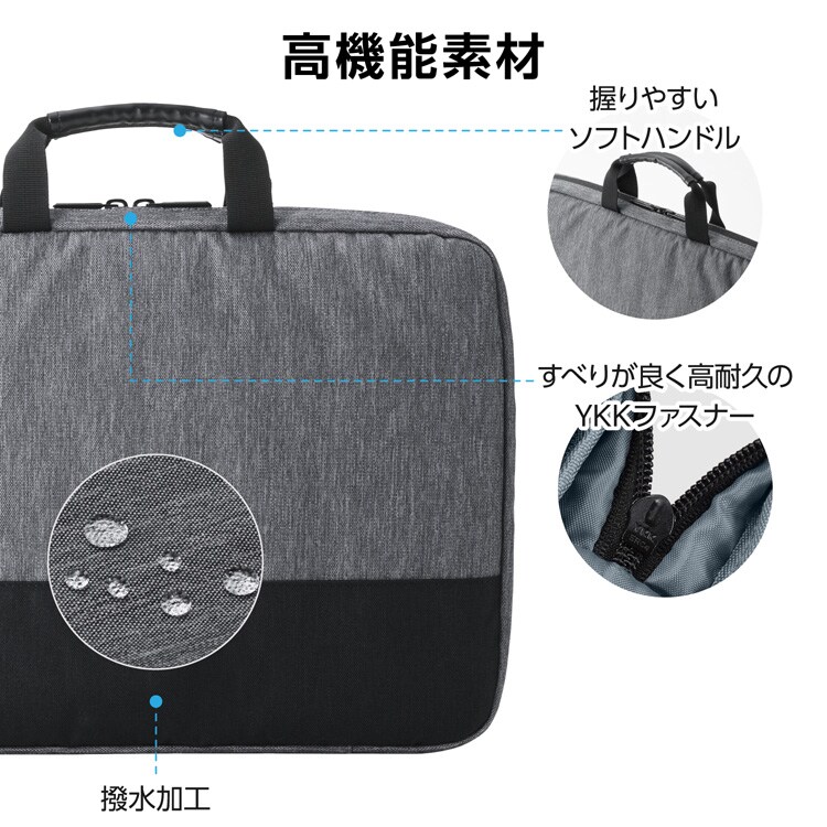 【エレコム パソコンケース 14インチ ハンドル付 ダブルファスナー 衝撃吸収 グレーの商品詳細】