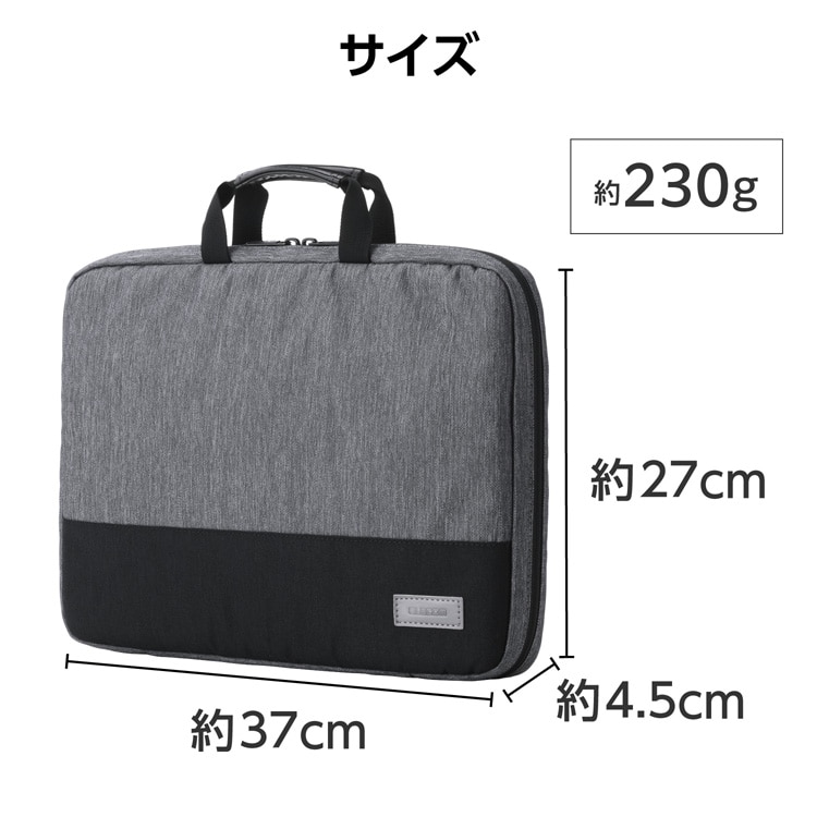 | 外形寸法:W約370mm×D約45mm×H約270mm ※ハンドル含まず 気室数:1 内寸:ノートパソコン用オープンポケット:W約325mm×D約20mm×H約230mm ※14.0インチノートパソコンの参考収納寸法 対応モデル:14.0インチまでのノートパソコン パソコン収納部内寸備考:※W約325×D約20×H約230mmが対応端末サイズとして最大です。これより小さい寸法の端末の収納に対応します。一部の端末は対応しない場合があり、保証の限りではありません。最新の対応情報はエレコムホームページでご確認ください。 ポケット(気室内):ノートパソコン用オープンポケット(飛び出し防止バンド付き)×1、オープンポケット(ストレッチメッシュ)×2 カラー:グレー 材質:ポリエステル 重量:約230g 表面加工:撥水加工(表生地) |