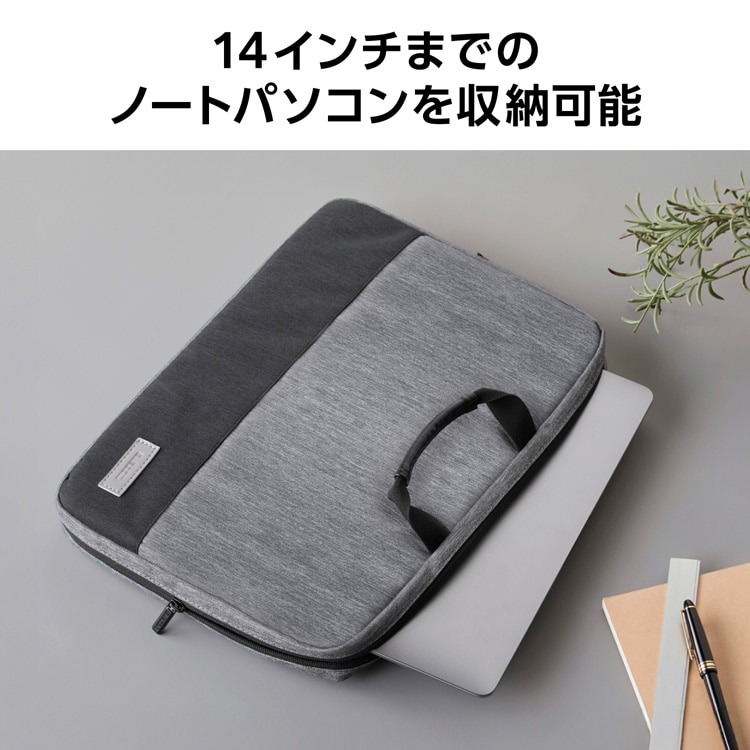 エレコム パソコンケース 14インチ ハンドル付 ダブルファスナー 衝撃吸収 グレー (1個)